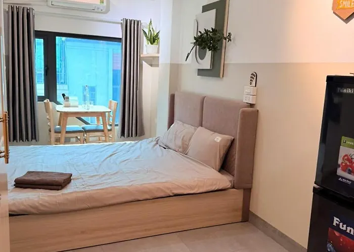 Własne posiłki można przygotować w pełnowymiarowej kuchni. W małej odległości od przystanku autobusowego Doi dien 196 Truong Chinh.